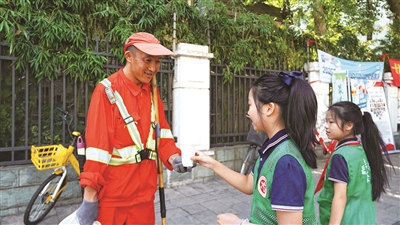 我刚开始递茶时,心里有些忐忑。因为我不知道面对陌生人应该说些什么。于是,妈妈陪着我一起走过去。当路人接过凉茶时,笑着跟我说“谢谢”的那一刻,我忽然懂了顾爷爷的坚持——被需要的感觉,原来是这么好。之后的几次,我都鼓起勇气自己过去送茶了。