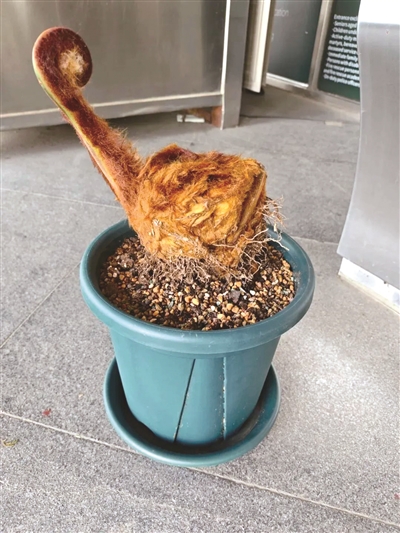 有一种神奇的植物,浑身长满金色“毛发”,外观形似狗头,它叫金毛狗蕨。近日,王先生就收到了这样一株朋友赠送的奇特植物,从未见过此类物种,好奇的王先生便拍照上网搜索。不搜不知道,一搜才发现这株长相奇特的植物竟然是国家保护物种,朋友也是多年前由他人赠予,对此毫不知情。