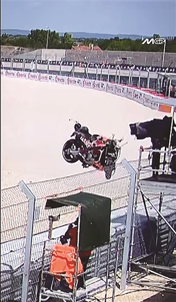23日的世界摩托车锦标赛匈牙利大奖赛的比赛中,西班牙车手佩德罗·阿科斯塔的赛车失控,滑出赛道,溜过砾石路段,飞过围栏,撞向摄影师若昂的机位。