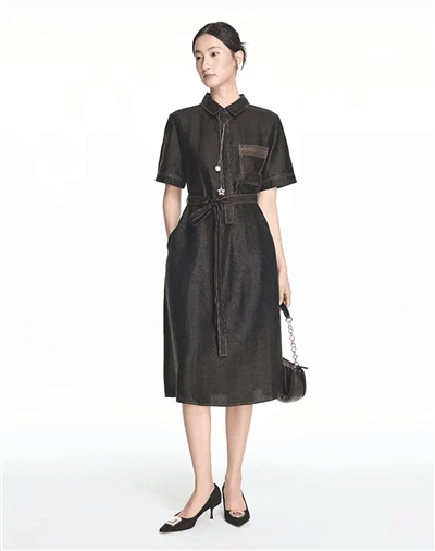 衬衫领连衣裙 甄选30姆米“软黄金”香云纱。衬衫领连衣裙H版型,对身材包容性比较好,明线车缝让整件衣服眼前一亮,既高级又减龄。中袖能恰到好处地遮挡手臂肉肉,同时增添几分端庄感 。整体宽松的剪裁,对各种身材的包容性强,穿着自在又舒适。