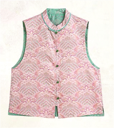 圆领中式马甲 圆领中式马甲版型,经典百搭。圆领设计贴合颈部线条,柔和优雅,展现出女性温婉的气质。独特的粉色调,显白显年轻。