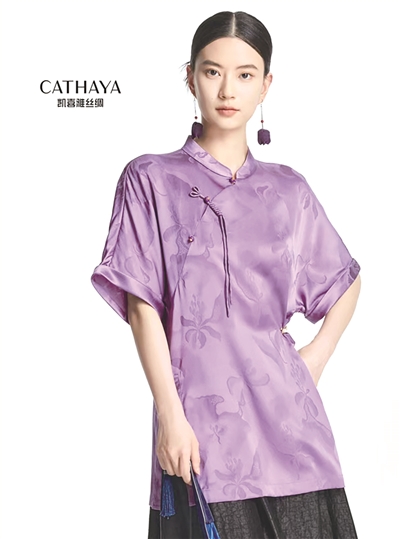 蝴蝶缎套衫 采用独创的数字织造技术,让真丝面料拥有更多可能性,荣获有纺织业奥斯卡美誉的“十大类纺织创新产品”称号和专利证书。