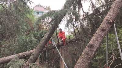 昨天下午,记者从拱墅区综合行政执法局了解到,由于大风,全区出现了不少树木倒伏的情况,“我们所有工作人员都出动了,到各个现场处置。”