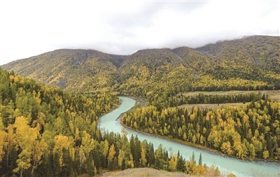 阿勒泰的秋:喀纳斯的白桦林染成金黄,卧龙湾的水映着雪山,五彩滩的丹霞与河流碰撞出油画感,每一步都是壁纸级的画面。