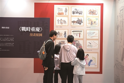“这些漫画作品生动而震撼,仿佛带我穿越回那段历史现场。今天特地带上孩子,就是希望他能够更直观地了解过去,真切感受到先辈们的爱国情怀与精神力量。”在《逃出香港》系列组图前,香港市民林海滨正为孩子轻声讲解漫画内容。