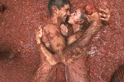 每年8月的最后一个星期三,西班牙布尼奥尔镇就会迎来一年一度的“番茄大战”。今年是该活动80周年纪念,预计小镇会被120吨番茄染成红色。“番茄大战”源自1945年当地孩子们之间一场互相投掷番茄的食物大战。据主办方估计,今年会有2.2万人参加活动,互相投掷熟透的番茄约1个小时。非本地居民需要支付15欧元的入场费。活动中用到的番茄不可食用,是专为该活动而种植的。为避免受伤,主办方鼓励参与者在投掷前把番茄挤碎。即便如此,许多人还是戴上泳镜和耳塞以作保护。