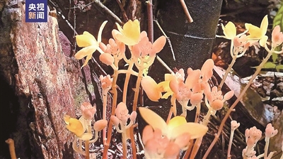 肉果兰通常仅在开花结果时短暂露出地面,其余时间隐藏于地下与真菌共生,其完整生命周期至今仍是植物学界未解的演化密码。科研人员介绍,此次发现的矮小肉果兰多达22株聚生,十分罕见。它们生长于溪谷旁,腐殖质层厚达30厘米,真菌菌丝如银色神经网络密布地表,为解析亚热带森林的生物协同进化机制提供了弥足珍贵的生态样本。