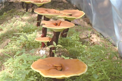 林下灵芝种植基地有500亩,采用林下仿野生种植,用山泉水浇灌,过程中不打农药。