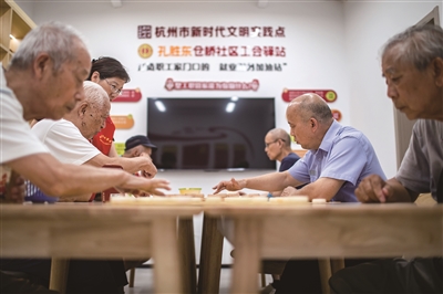 杭州市拱墅区孔胜东公益事业发展中心,孔胜东和居民下棋。