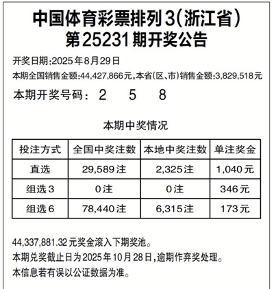 中国体育彩票排列3(浙江省)