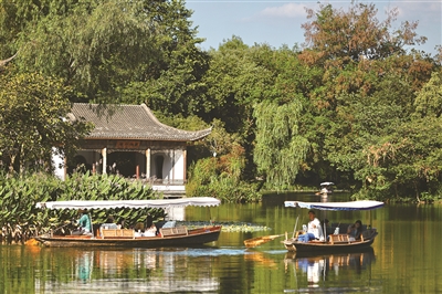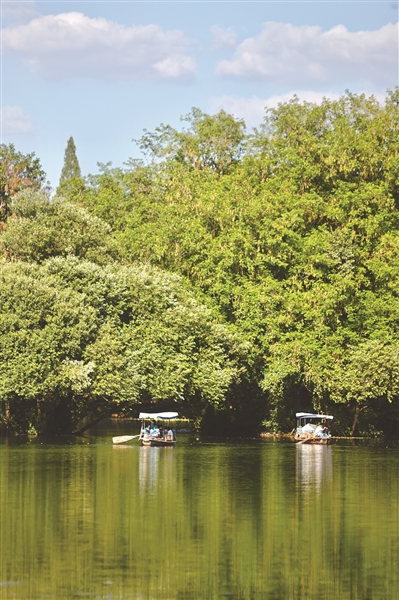 浴鹄湾,骄阳下的游船。 记者 江玥 摄