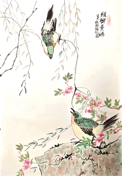 插画狮:《绿柳黄鹂》杭州市长寿桥岳帅小学三(3)班 孙语竹