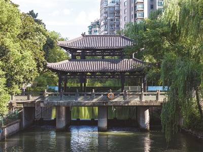 “湖墅八景”之一的“陡门春涨”,便与新河坝有关。当时新河坝有南北两陡门,“陡门”也称斗门,是人工建造的拦水闸门。每当春汛时西湖水满溢,“陡门”开闸放水入河,使得河水猛涨。西湖之水奔流至此,当时有多壮观以至于可以列入“八景”?明代的王洪在《卜算子》里写:“惊雪喷高崖,雷响青天晓。”而晚他几年的聂大年则用词更加夸张:“夜来春涨崩奔,惊涛拍岸撼昆仑。”穿越酷夏,站在如今的新河坝新建的重檐亭上,当年的盛景只能靠想象了——昔日新河坝旁边还有集市,坝附近还曾经有过两座大庙,一座潮王陈才的潮王庙,一座则是祈“天、地、水”三官的三官庙。