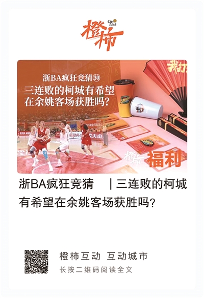 扫二维码留言,猜猜A组第四轮比赛,余姚队vs柯城队的获胜方,以及全场得分+篮板球数最高的球员。