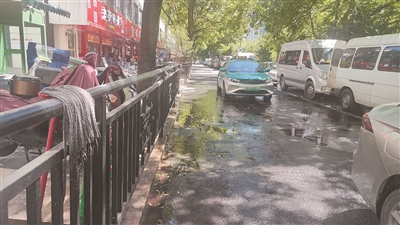“差不多在午后,这些店就会把水排到人行道和路上。”这位橙友告诉记者,这样的情况出现了好几次,每次骑车路过,都要溅起水花。