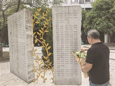 阿明到浙大医学院无语良师碑前,给勇哥送了一束花。