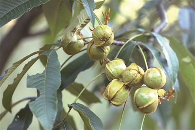 马佩军说,“今年8月持续高温导致山核桃提前成熟落果,所以等不到白露便提前开竿了。今年估计能提前一周上市,9月15日左右就可以尝鲜”。