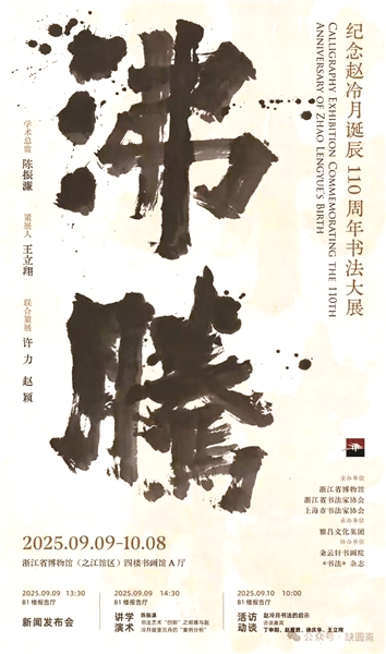 今年是赵冷月先生110周年诞辰。浙江省博物馆、浙江省书法家协会、上海市书法家协会联合主办的“沸腾——纪念赵冷月诞辰110周年书法大展”,将于9月9日在浙江省博物馆(之江馆)开展。