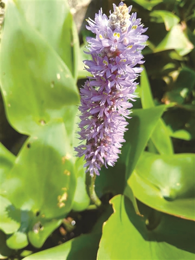 橙友“猫妈小郑”:养在池塘里的梭鱼草,有点像紫色的鸡毛掸子。