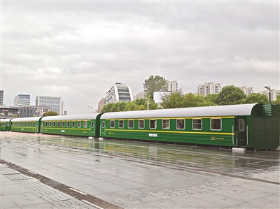 9月16日,一名网友在社交平台发布了一张图片,内容是杭州东站的东广场上停着一列“绿皮火车”。并配文“杭州东站在弄什么新奇玩意儿”。
