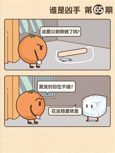 天气太热了,橙子警官想吃根棒冰降降温,却发现唯一一根棒冰只剩骨骸了。