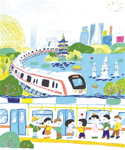 插画狮:《杭州地铁,安全出行》 杭州市胜利实验笕成小学三(5)班 陈楚佳