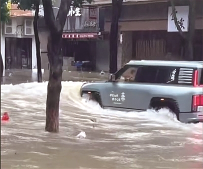 9月24日15时22分,我局接群众报警称,在斗门区江湾中路附近路段,有一辆越野车在涉水行驶时激起水流致周边商铺玻璃门损坏。我局接报后迅速组织调查。