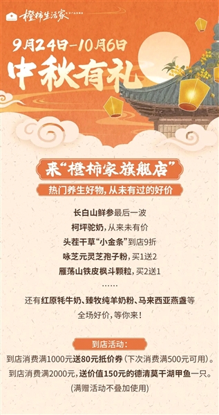 活动时间:9月24日起至10月6日。满赠活动不叠加使用。(张婉如)