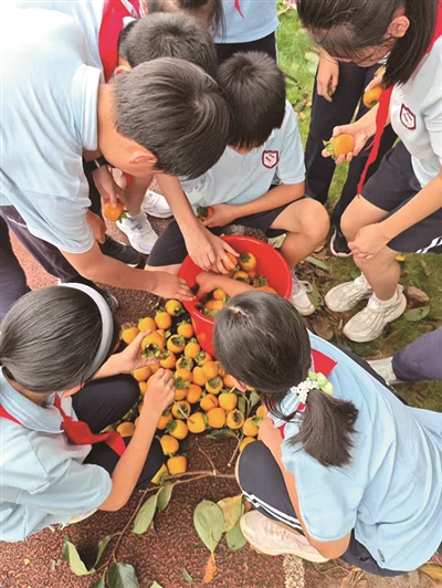 多年实践下来,学校还将采摘节做成了一个德育课程,让学生围绕果实进行项目化学习。在接下来的小长假中,五年级各科的作业都将和柿子有关。比如语文学科的任务是收集描写秋天果实的诗,创作一首关于柿子的小诗;英语学科的任务是设计一句朗朗上口的英文广告语来推销柿子或柿饼;劳动课程中,同学们需要在家人的帮助下,尝试制作简单的柿子美食,如柿子沙拉、柿子酱,或学习晾晒柿饼的初步步骤。