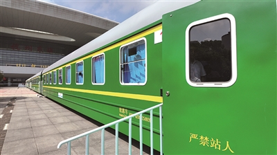 这是一列露天停靠在杭州东站东广场的绿皮火车,但它不仅是拍照打卡的复古背景,更是向旅客提供夜间躺睡的地方。