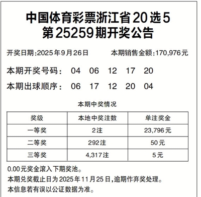 中国体育彩票浙江省20选5