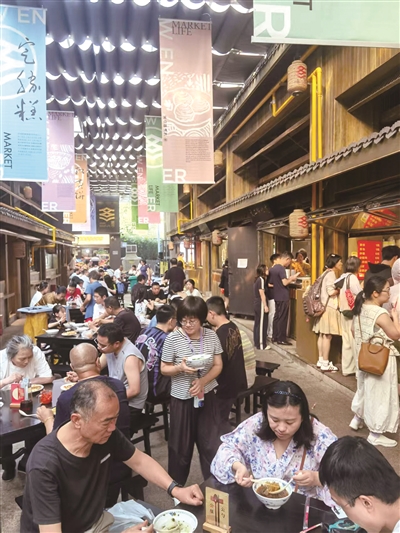 文二菜市的早餐区坐满了人 记者 诸芸 摄