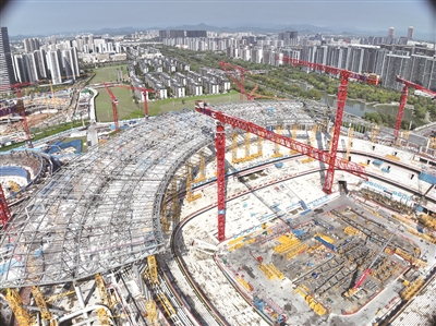 近日,杭州余杭国际体育中心项目有了新进展——西区钢屋盖全面完成,足球场钢结构已完成50%。