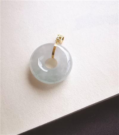 线下店专享款-老坑冰种甜甜圈,镶嵌18k金扣头,文雅清秀。