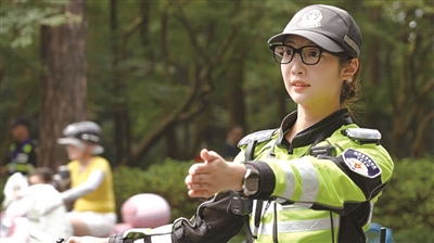 杭州交警TPTU队员李语蔚戴上智能眼镜执勤 杭州交警供图