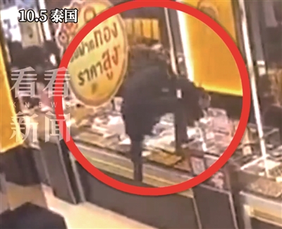当地时间10月5日傍晚,泰国一家商场发生持枪抢劫案,约10名身穿黑衣的蒙面歹徒闯入金店,抢走约400铢(约6000克)重黄金首饰后,乘坐皮卡车逃逸。