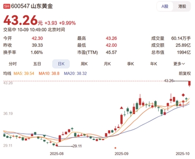 需要指出的是,在国庆长假期间,港股黄金股整体表现出色,其中,赤峰黄金港股10月8日大涨13.26%,股价创上市以来新高,长假期间累计上涨23.54%;山东黄金累计上涨15.59%,紫金黄金国际累计上涨21.48%。