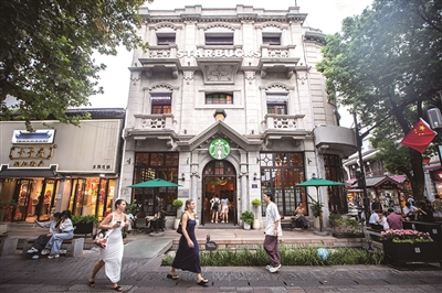 中山中路70号,张允升百货旧址,已成为星巴克臻选杭州河坊街非遗概念店。 记者 陈中秋 摄