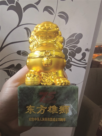 房间收拾得蛮清爽,电视里播放着央视电视剧。“我年轻时当过兵,生活习惯还可以。”丁爷爷边说着边走进里屋,捧出两个礼盒。打开,包装完好,一个是油汪汪白色似玉的印章,一个是黄灿灿的狮子印章。“我没想到你来得这么快,手边只有这两个,其他的收起来了,要找找……”