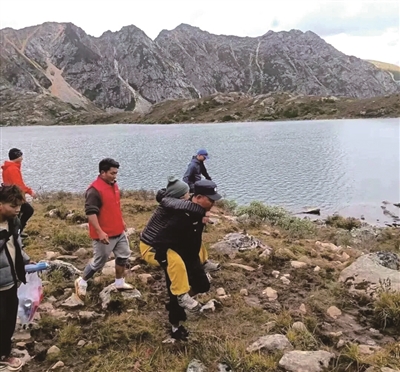 10月2日,在海拔4700米的四川甘孜丹巴县丹东镇的卓雍措湖垭口附近,一名20岁女游客出现高反、失温等情况,路过游客和当地警方、镇政府工作人员、医务人员接力救援,成功将女游客运送下山送至医院。