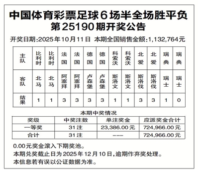 中国体育彩票足球6场半全场胜平负