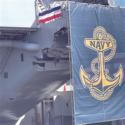 美国海军“哈里·杜鲁门”号航空母舰今年2月曾与货轮相撞受损。近日,一张在网络上广泛传播的照片显示,“杜鲁门”号航母8个月前因受损导致的巨大洞口似乎未被修复,而是疑似被涂漆覆盖,此事引发网友争议。