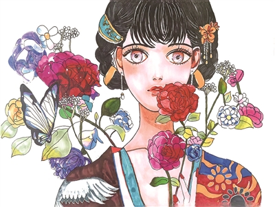 插画狮:《花间蝶语》杭州市余杭区闲林中心小学上和校区三(8)班 陈秋娴