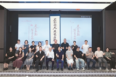 活动以“创新互动+感官融合”为特色,让金融空间变身艺术现场。开场的“石语迎宾”环节打破传统签到模式,嘉宾们以笔墨共同勾勒“写意山水”画卷,零散笔触在协作中汇聚成完整意境,每位参与者都成为文化创作的一分子,实现从“旁观者”到“参与者”的身份转变。
