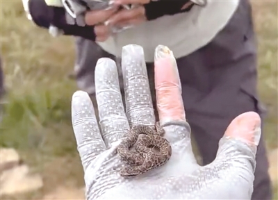 视频中的幼蛇是一条短尾蝮蛇,虽毒性弱于成蛇(成蛇体长60-80厘米),但仍具毒性,短尾蝮蛇排毒量大、毒性强,是我国蛇伤数量最多、危害最大的蛇种之一。