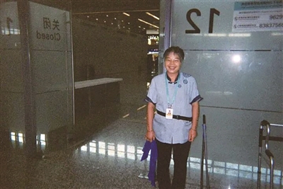阿姨姓洪,是机场T4航站楼保洁员,主要负责安检口和登机口的环境卫生。那天洪阿姨正在安检口旁拖地,不经意间听到刘女士和工作人员对话,“走人工通道过安检,需要证明相机可用,但安检的地方又不能随意拍照,我就过去跟她说,干脆拍我好了”。