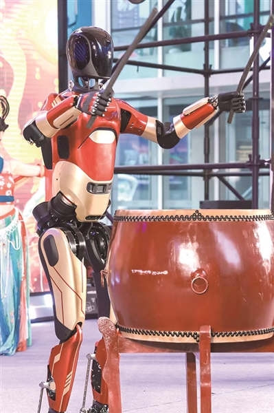 本周末,智元远征A2机器人将化身“氛围担当”:敲起迎宾鼓,欢迎每一位观众的到来。咚咚咚的鼓点又快又准,连复杂节奏也能轻松拿捏。