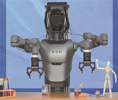 单手夹起一支滴管,探入量杯A中汲取清液,再平稳移向B杯,精准滴入……这台由智澄AI研发的物理智能复合型人形机器人TR4,正在进行独立移液操作。