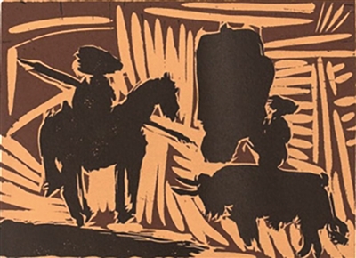 《斗牛士入场》,是毕加索晚年在法国创作的著名版画作品,他通过作品探索了生与死、创造与毁灭、地球与太阳的主题,并将自己置于这场盛会的中心。这也是毕加索在法国南部长期生活后,对自己故乡西班牙的一种思念和回味。