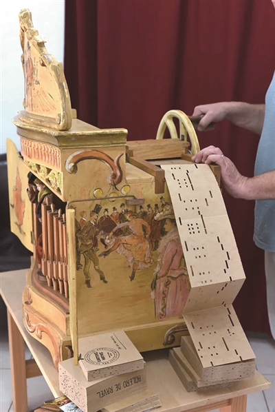 桶风琴的琴谱很特别,是工艺师手动摇出来的,由一个个镂空的图形构成。在杭州文博会A1馆,你可以近距离欣赏这张“重工”的琴谱。